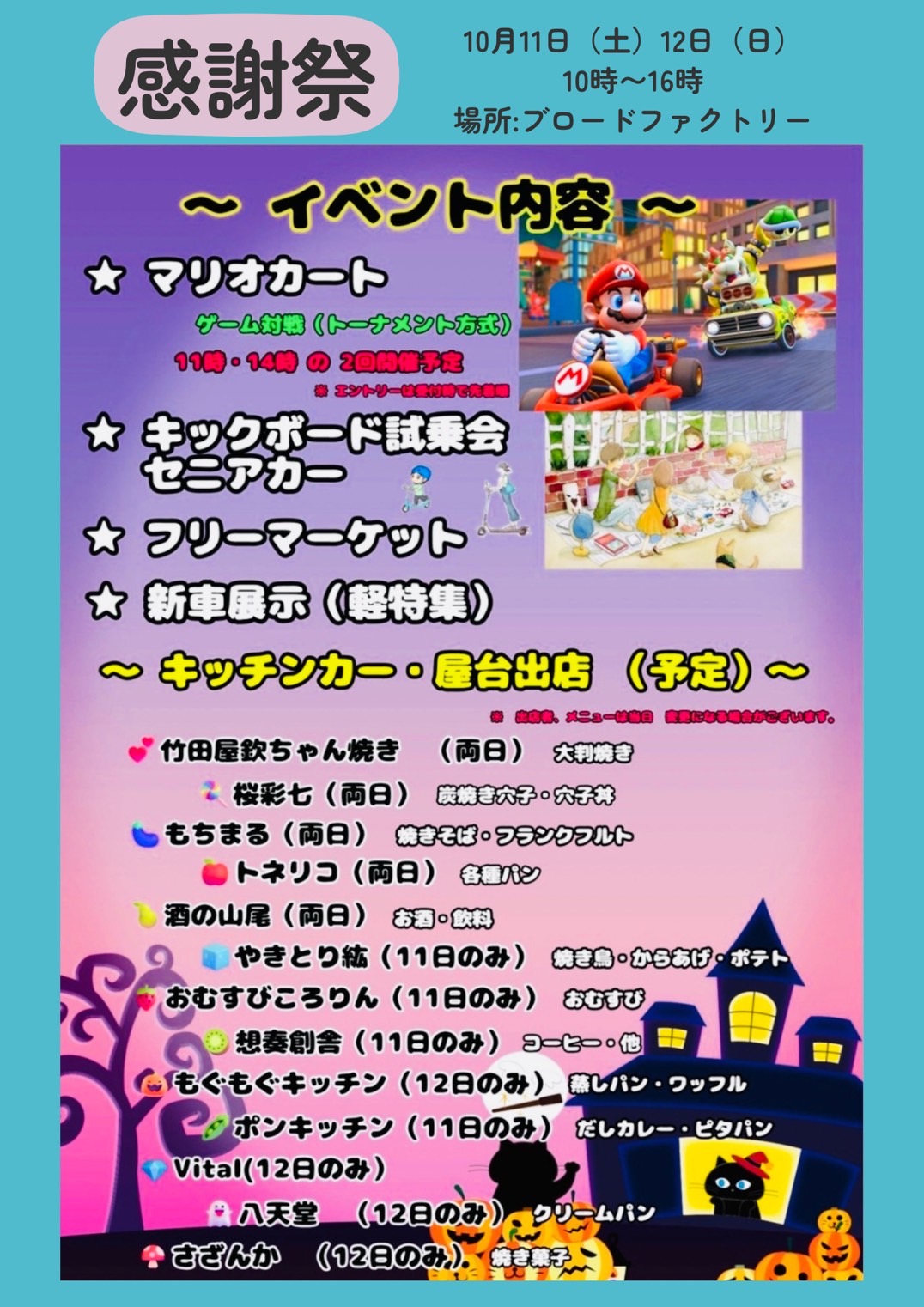 10/11㈯、ブロードファクトリーさん(江津市敬川町2472−8)で行われる感謝祭に出店しますぜひご参加ください!!