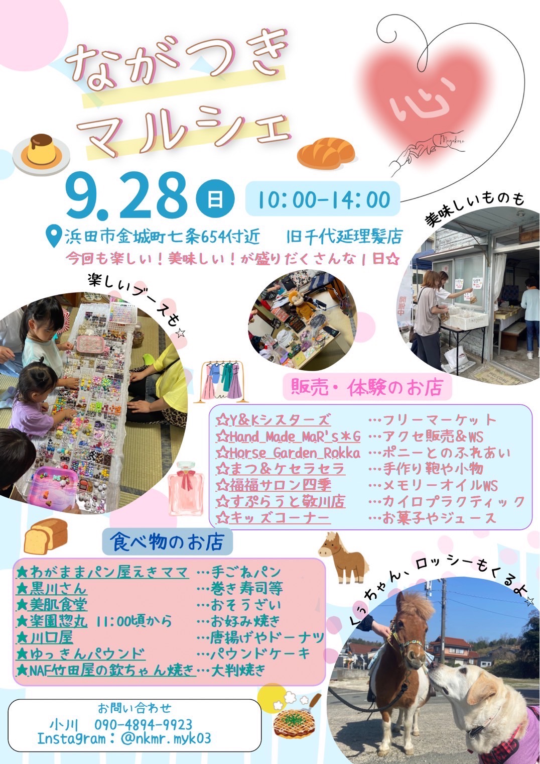 9/28㈰、浜田市金城町七条654付近(旧千代延理髪店さん)にて「ながつきマルシェ」に出店しますぜひご参加ください!! お問い合わせ小川:090-4894-9923Instagramでのお問い合わせはこちら