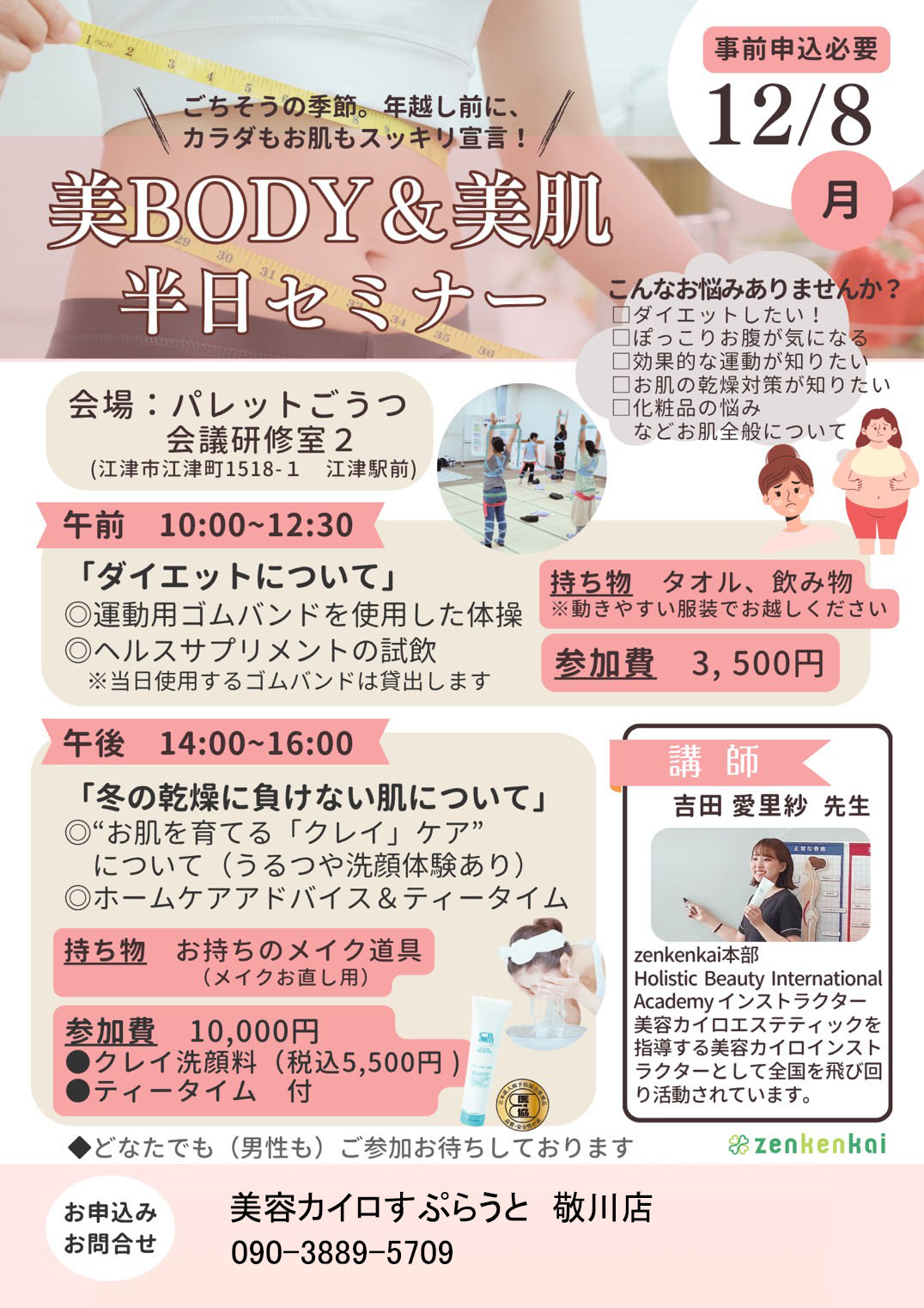 12/2(月)、江津市のパレットごうつにて「美BODY&美肌半日セミナー」を行いますぜひご参加ください!! お問い合わせ美容カイロすぷらうと 敬川店:090-3889-5709