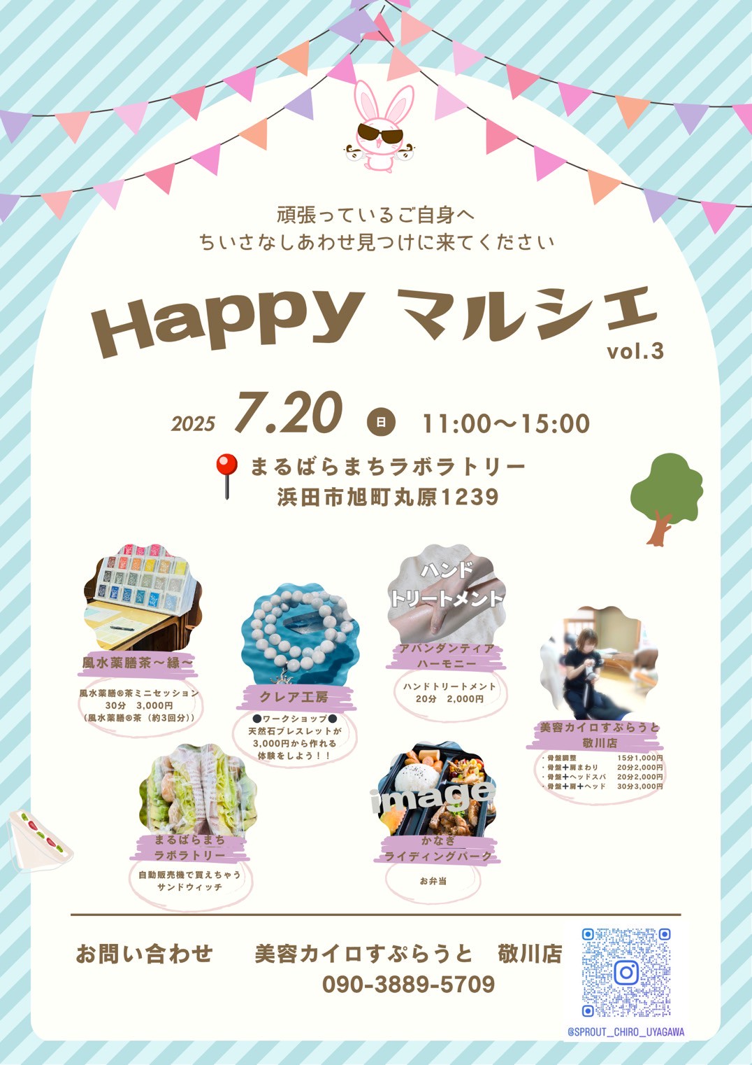 7/20㈰に、浜田市旭町丸原にある「まるばらまちラボラトリー」で行われるイベントに、当サロンも参加いたします。ぜひご参加ください!! お問い合わせ美容カイロすぷらうと 敬川店:090-3889-5709